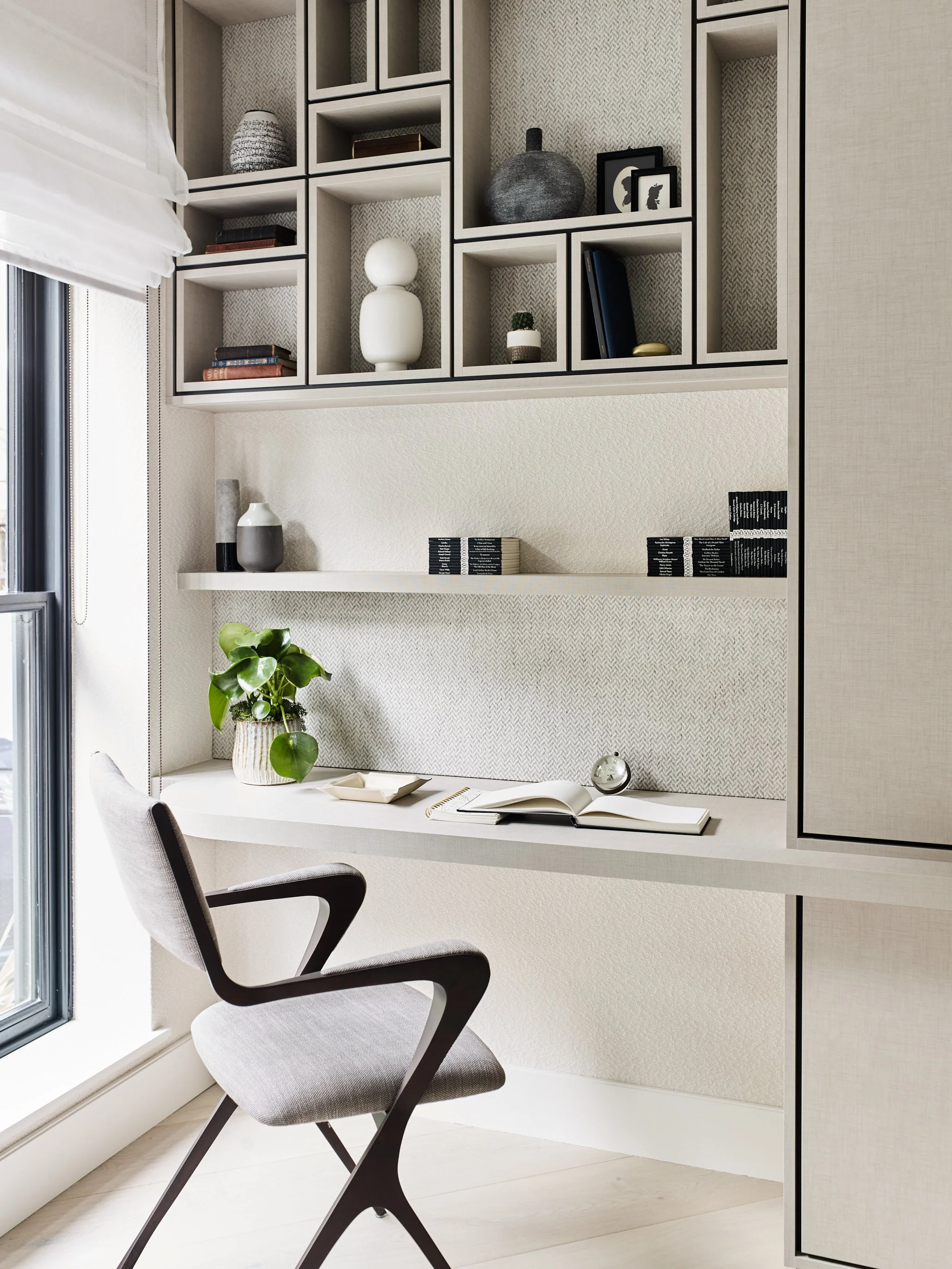 The house had very few architectural features with little to no elements that we wanted to retain within the design. More importantly, the layout of the original design didn’t work for the client at all. We worked hand in hand with an architect to keep the façade of the property and some of the joisted floors but start afresh with the rest of it. We added new staircase position, a ground floor extension, a new rear façade, new glazing at the front and back and by doing so, it allowed us to create an entirely new identity for the property. By doing that, we had to carefully spend time thinking about what exactly the new character would be - a designer’s dream scenario! We were left with a building envelope with limited ceiling heights and needed to decide how to make the most of that. Instead of introducing classical features, which would’ve made the ceiling feel even lower, we took our time carefully developing a contemporary concept packed with light, neutral tones, lots of green to bring in a taste of the outside and fully embrace our love of biophilic design. We layered in natural woods, light stained oaks and nice marbles to celebrate the tranquility and calming feel we wanted to emulate with the new character of the property.