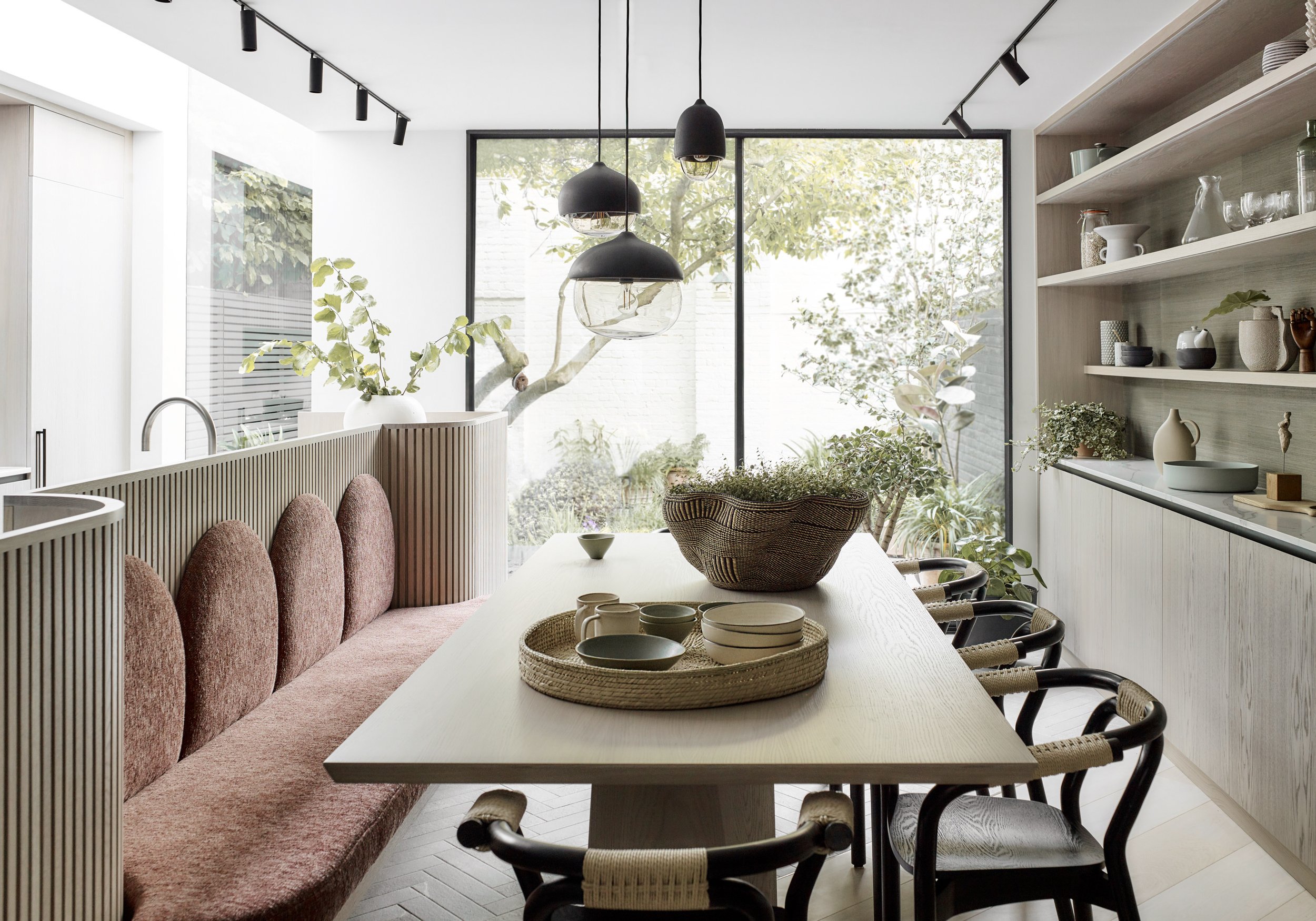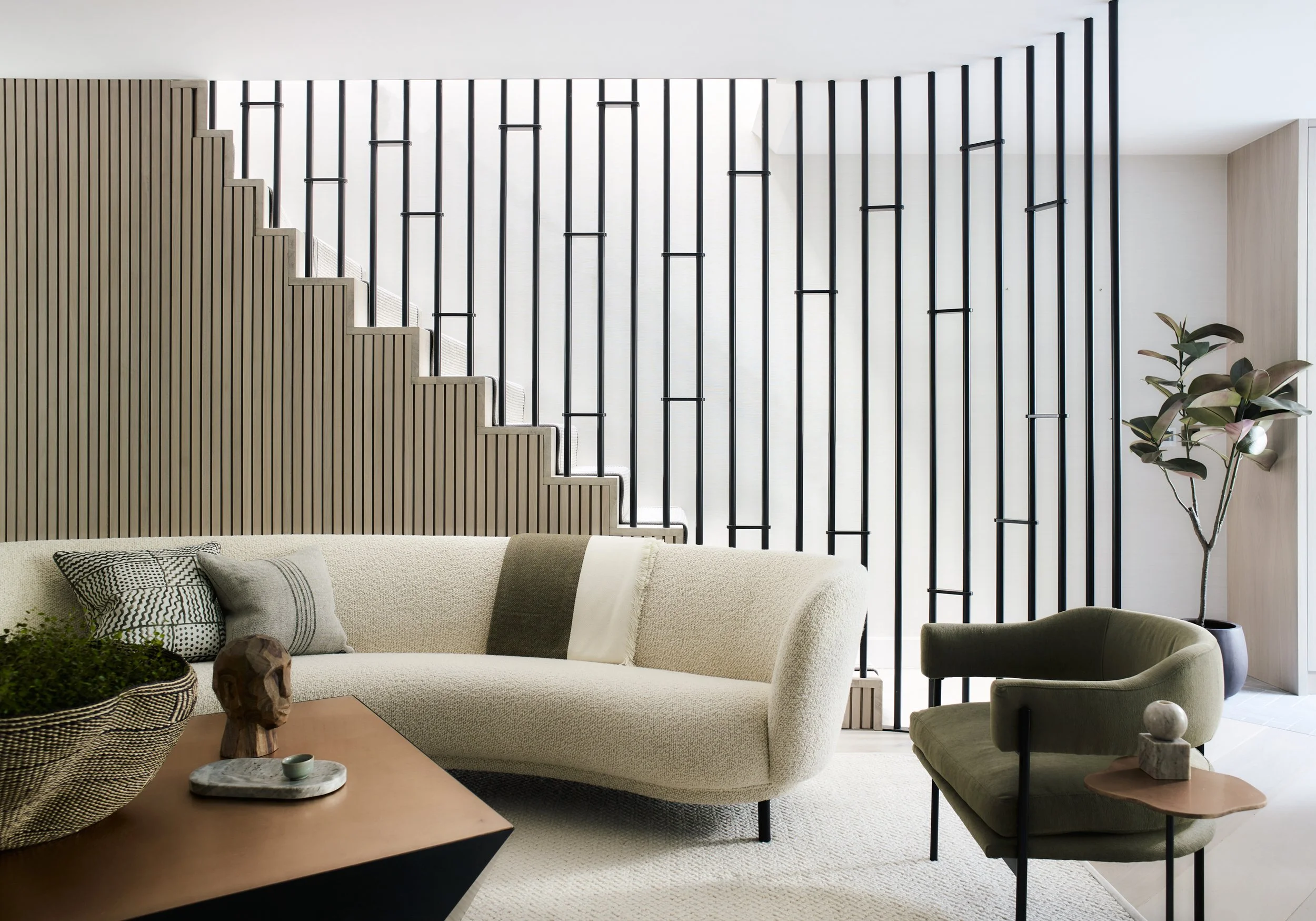 One of the many joys of this project was that this was a former client who knew how we worked, trusted us implicitly with our vision for their property. This level of trust is something we really pride ourselves on. We effectively took a sledgehammer to the entire space and the end result was a truly magical renovation - with two different style staircases, curved detailing and textures at every turn, it’s now a property packed with a very calm and modern feel to it.